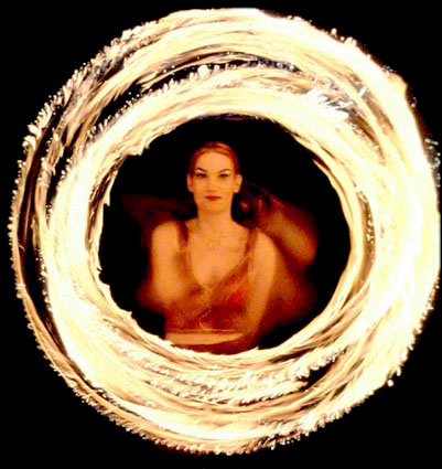 Le show de chez chaud : une chorégraphie pyrotechnique de jonglerie et de manipulation avec des torches enflammées, une danse où le feu est le partenaire de la jongleuse...