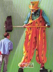 Ils sont grave marteaux ces Maxi Clowns: des clowns sur échasses munis d’accessoires géants pour des effets terribles (équipe de 1 à 5 clowns).